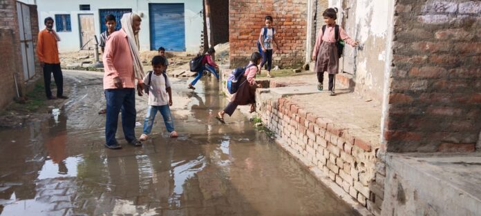 वाराणसी/-जिस जगह से भारत के भविष्य की नींव तैयार हो रही है वहां आज बच्चे गंदगी से होकर स्कूल जाने को मजबूर हैं।हर सुबह मासूम कदम उम्मीद लेकर निकलते हैं कि शायद आज रास्ता साफ हो,लेकिन फिर वही बदबू,वही कीचड़ और वही डर…कहीं गिर न जाएं।विकास के वादों के बीच नगर पंचायत गंगापुर के लोगों की ज़िंदगी जैसे कहीं रुक गई है।वाराणसी के नगर पंचायत गंगापुर में रहने वाले लोग इन दिनों बुरी तरह परेशान हैं।
