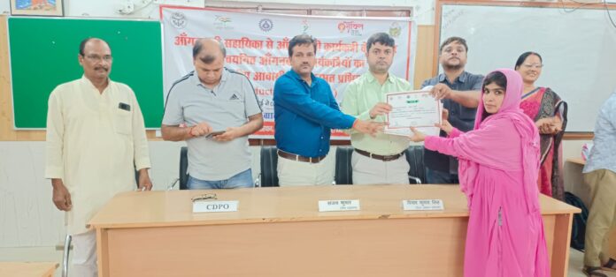 वाराणसी/-मां का पहला गाढ़ा दूध शिशुओं के जीवन में टीकाकरण का काम करता है।जन्म के एक घंटे के भीतर शिशुओं को स्तनपान अवश्य कराना चाहिए।उक्त बातें जिला ग्राम्य विकास संस्थान परमानंदपुर में एक जुलाई से चल रहे आंगनबाड़ी सहायिका से आंगनबाड़ी कार्यकत्री के पद पर प्रतिचयनित आँगनबाड़ी कार्यकत्रियों के सात दिवसीय आवासीय आधारभूत प्रशिक्षण सत्र के समापन अवसर पर प्रशिक्षुओं को सम्बोधित करते हुए जिला प्रशिक्षण अधिकारी विमल कुमार सिंह ने कही।प्रशिक्षण सत्र के दौरान आंगनबाड़ी कार्यकत्रियों को सम्बोधित करते हुए बाल विकास परियोजनाधिकारी दिलीप केशरी ने कहा कि सात दिवसीय प्रशिक्षण सत्र के दौरान प्राप्त जानकारी के माध्यम से अपने कार्यक्षेत्र में उत्कृष्ट कार्य करने का संकल्प लेकर यहां से जाएं सभी आंगनबाड़ी इसी क्रम में बाल विकास परियोजनाधिकारी आशीष कुमार वर्मा ने कहा कि सभी आंगनबाड़ी कार्यकत्री अपने-अपने केन्द्रों पर बाल मैत्री स्वच्छता सुविधाओं का विशेष ध्यान रखें जिसके अन्तर्गत साबुन से हांथ घुलने के लिए SUMAN-K विधि का प्रयोग करने को बताया।प्रशिक्षण कार्यक्रम के सात दिवसों में मास्टर ट्रेनर पुष्पा सिंह,राधेश्याम यादव द्वारा प्रशिक्षुओं को आईसीडीएस विभाग का परिचय,लाभार्थियों को दी जाने वाली सेवाओं,आंगनबाड़ी की भूमिका,पोषण का महत्व,पोषक तत्वों के प्रकार,जीवन के सुनहरे एक हजार दिन,गर्भावस्था के दौरान मातृ पोषण,अनुपूरक पुष्टाहार,प्रधानमंत्री वंदना योजना,वृद्धि निगरानी,पोषण ट्रैकर एप्लिकेशन,डेली ट्रैकिंग,बाल मैत्री,स्वच्छता सुविधाओं का मानक आदि के बारे में जानकारी दी गई और विभिन्न गतिविधियों का अभ्यास कराया गया।प्रशिक्षण कार्यक्रम बाल विकास परियोजना नगर क्षेत्र से प्रतिचयनित 26 आंगनबाड़ी कार्यकत्रियों को प्रशिक्षित किया गया।समापन अवसर पर सत्र प्रभारी संजय कुमार द्वारा सभी प्रशिक्षुओं एवं अतिथियों का धन्यवाद ज्ञापित किया गया।इस अवसर पर सुरेश तिवारी,नीरज कुमार,अजीत कुमार,शशिकला पाण्डेय,मुनमुन दत्ता,विमला रानी,दुर्गा देवी,अनीता देवी,चन्दा अग्रहरी,लक्ष्मीना देवी,पूनम देवी,दीप्ति चौरसिया,शोभा सिंह,सुरैया आजमी,सुनीता भारती,शशि रघुवंशी,पिंकी देवी,संध्या यादव,नीरा,बेबी,सुधा,विभा आदि की उपस्थिति रही।