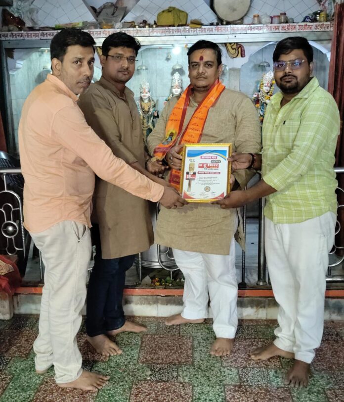 वाराणसी:काशी के सारनाथ सारंगनाथ महादेव मंदिर के महंत मनीष उपाध्याय मोनू गुरु जी को UP 18 NEWS एवं उत्तर प्रदेश पत्रकार परिषद संगठन से बनारस गौरव अवॉर्ड सम्मान से आशीष मोदनवाल जी द्वारा सम्मानित किया गया एवं विश्वास जायसवाल जी ने अंग वस्त्र पहना कर स्वागत किया उपाध्याय जी का कहना है समाजसेवी के नाम पर काशी में चर्चित हैं और सारनाथ सारंगनाथ महादेव मंदिर के महंत के साथ संरक्षक भी है और बाबा काल भैरव जी के महंत है जो महंत के रूप में हमेशा हर लोगों के लिए सेवा करने के लिए तैयार रहते है इसके लिए UP 18NEWS के टीम द्वारा चयनित कर सम्मानित किया गया और UP 18 NEWS चैनल में सदस्य के रूप में जोड़ा गया औरउन्हें उस चैनल के पदाधिकारी ने कार्ड भी पहना कर दिए बधाई और पुजारी अनिल पांडे, सुनील पांडे, श्याम पांडे श्याम सुंदर दीक्षित,शिव शंकर , सौरभ वर्मा इनकी सहराना करते हुए बधाई दी जिससे मुख्य रूप से अवधेश केसरी, आनंद गुप्ता , अक्षय वर्मा , आदर्श अग्रहरि इत्यादि लोग सम्मानित करने के लिए मौजूद थे
