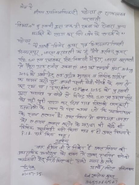 एक ही भूमि का दो लोगो को किया गया सट्टा पीड़ित पहुँचा एसडीएम दरबार लगाया न्याय की गुहार एफआईआर दर्ज करने का किया माँग