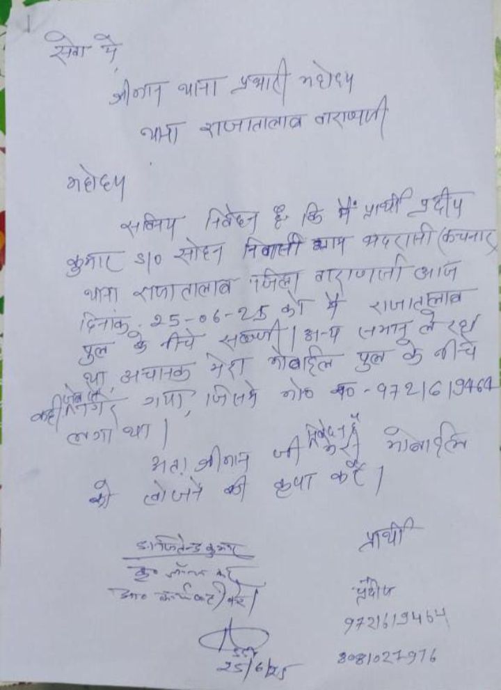 प्रदीप द्वारा थाना राजातालाब पर मोबाइल गिर जाने की सूचना लिखित रूप से दिया गया जिसके बाद थाना राजातालाब पर तैनात उप निरीक्षक जितेंद्र कुमार द्वारा तत्काल मोबाइल फोन का लोकेशन निकालते हुए सब्जी के दुकान पर पहुँच मोबाईल बरामद कर पीड़ित प्रदीप को सौप दिया गया,तत्काल मामले का संज्ञान लेकर कार्यवाही करते हुए मोबाईल बरामद कर सुपुर्द करने की क्षेत्र में काफी चर्चा का विषय बना रहा लोग राजातालाब पुलिस की भूरी भूरी प्रशंसा करते नजर आये।