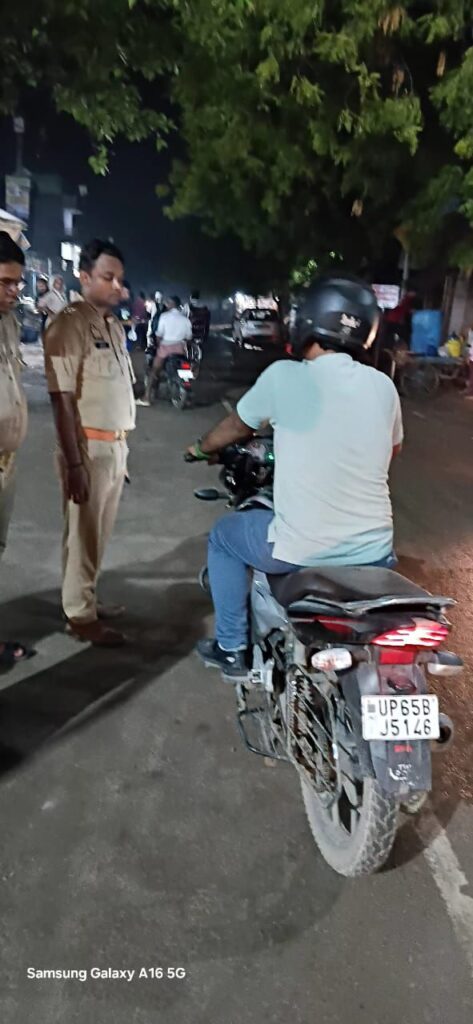 आपरेशन चक्रव्यूह के तहत वाराणसी/राजातालाब थानांतर्गत मातलदेई चौकी प्रभारी साकेत पटेल गाड़ियों का चेकिंग करते हुए